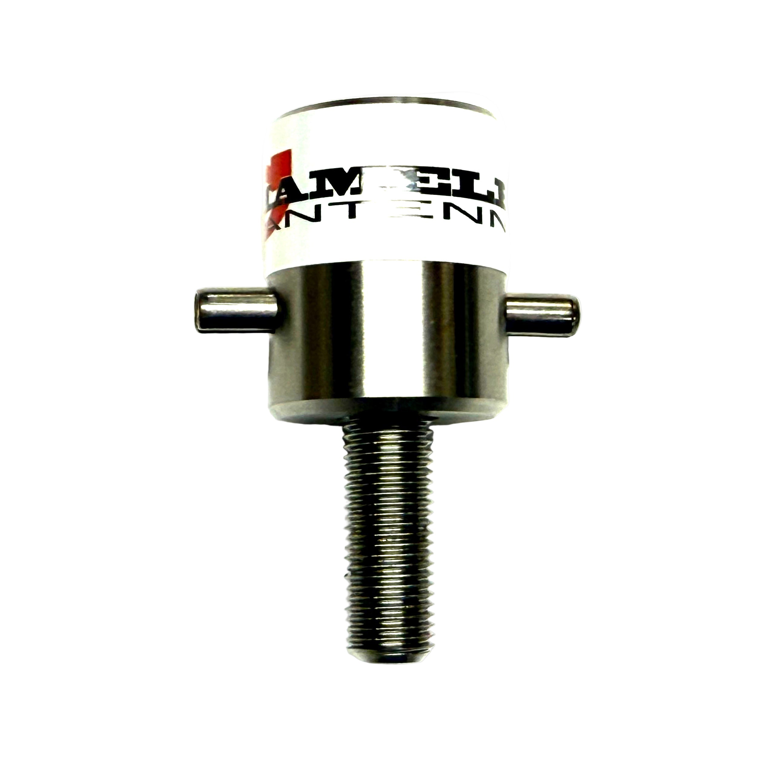 The CHA FSR includes a precision-machined stainless steel 3/8-24 coupling adapter (CHA FSR-A), designed to sandwich the system between any 3/8-24 mount and the antenna base. The adapter features a male 3/8-24 thread at the bottom and a female 3/8-24 thread on top, compatible with all Chameleon bases including the CHA BLANK, CHA HYBRID, and CHA MCC.